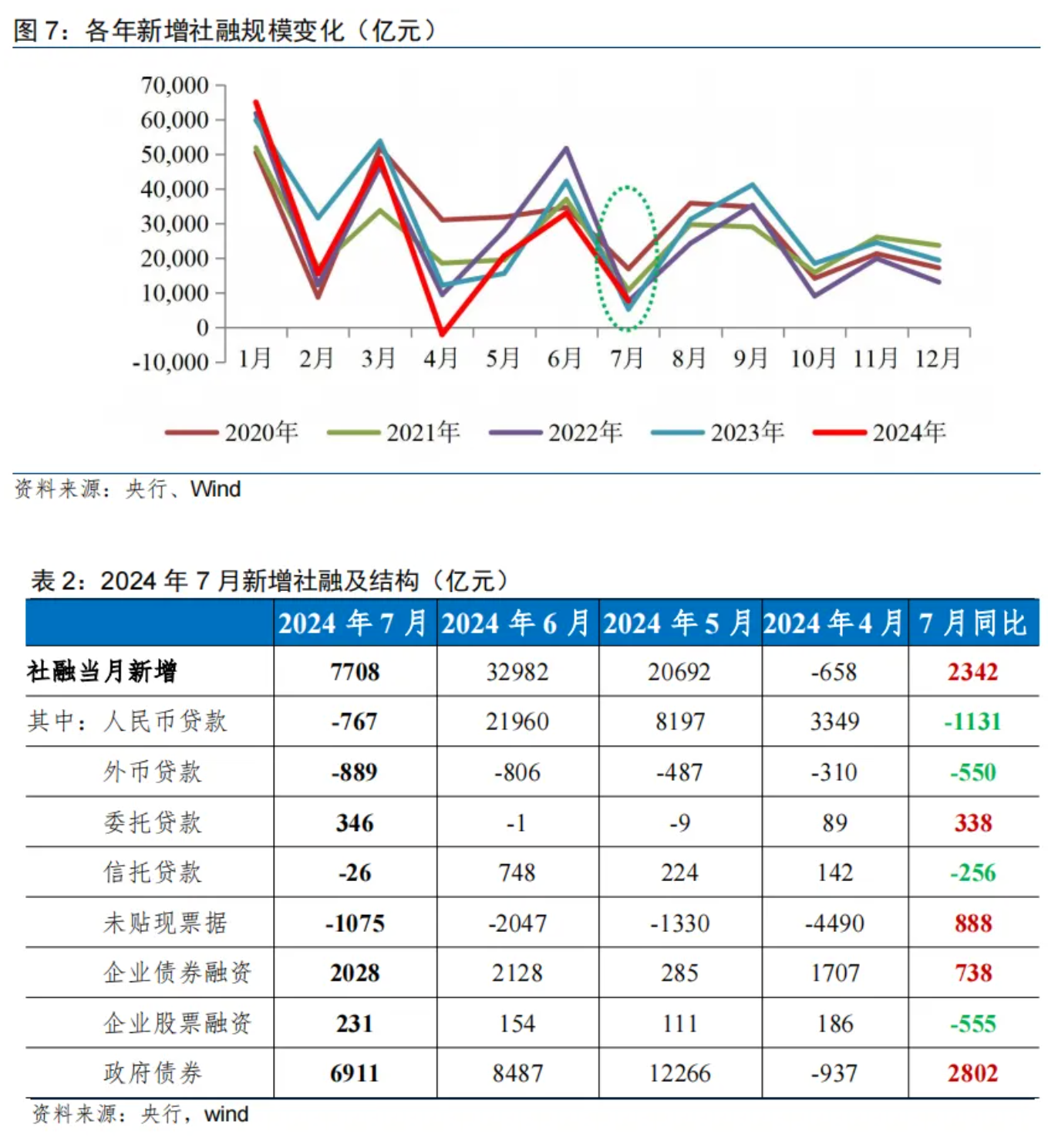 7月新增信贷低于五年均值