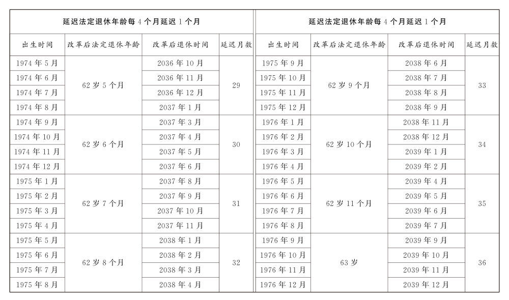 正文 转发收藏!延迟法定退休年龄时间对照表公布 辉煌优配 V管理员 /2024-09-13 14:52:03/37阅读/0评论 0913 此篇文章发布距今已超过405天,您需要注意文章的内容或图片是否可用! 关于实施渐进式延迟法定退休年龄的决定明年起施行,年龄对照表公布↓