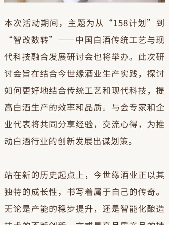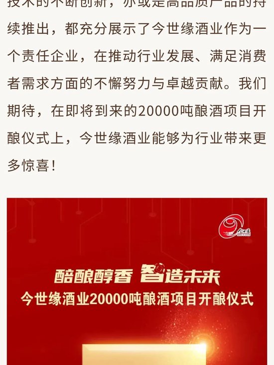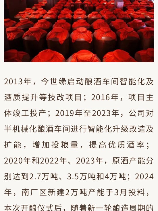 正文 今世缘酒业扩产项目开酿在即:产能升级、智酿新篇、品质见证 辉煌优配 V管理员 /2024-09-16 21:24:02/37阅读/0评论 0916 此篇文章发布距今已超过399天,您需要注意文章的内容或图片是否可用! 来源:酒业
