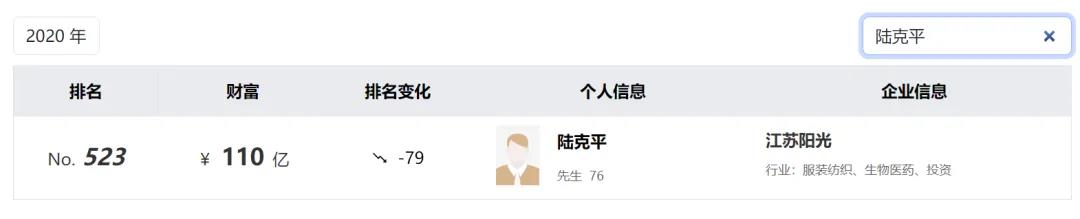 据《胡润百富榜》,2020年,陆克平以110亿元身家,排名榜单第523位;2022年,他身家缩水至95亿元,排在榜单的第663位。而在2023年,陆克平已掉出《胡润百富榜》。