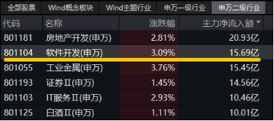 资金面上,软件开发行业全天获主力资金净流入15.69亿元,高居全部申万二级行业第二位!