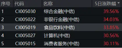 值得注意的是,本轮行情以来,吃喝板块表现十分亮眼。Wind数据显示,截至10:58,近5日食品饮料板块涨幅在30个中信一级行业中高居第3。