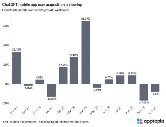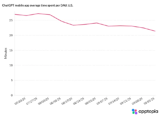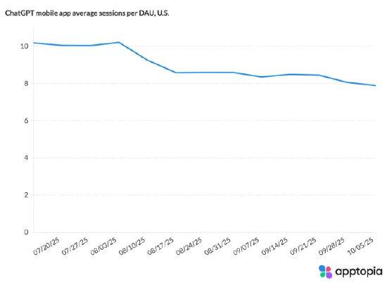 除 “增长触顶” 这一核心因素外,还有其他原因可能影响了 ChatGPT 的表现。这不仅包括来自 Gemini 的竞争压力,还涉及 4 月一次更新后用户使用行为的变化 —— 那次更新旨在降低 ChatGPT 聊天机器人 AI 模型的 “迎合性”;随后在 8 月发布的 GPT-5 模型,据称其 “人性化程度” 也有所降低,这一趋势得以延续。