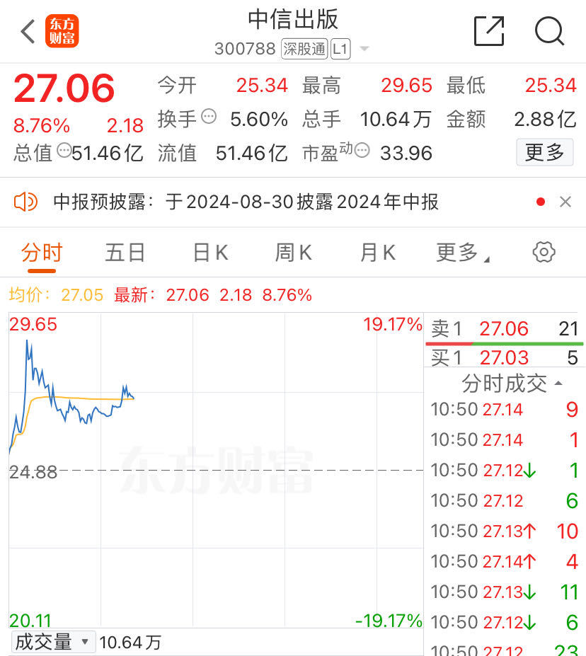 20日早盘,游戏传媒板块快速反弹,一度涨停,、涨超10%。不过,截至发稿,上述个股有所回落,中信出版、浙版传媒涨超8%。、等跟涨。