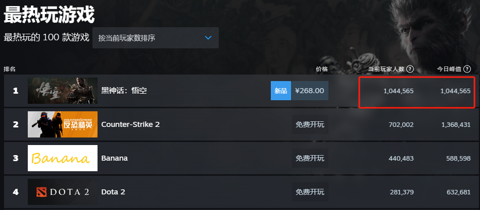 消息面上,首个国产3A大作《黑神话:悟空》今日正式上线,作为首个国产3A大作。值得一提的是《黑神话:悟空》正式发售1小时,即登上Steam最热玩游戏榜首,当前玩家人数超100万人。
