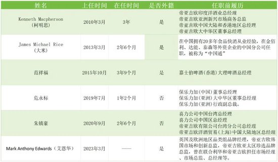 ▲帝亚吉欧控股水井坊后的历任总经理,镁经小组制图