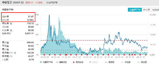 最新数据显示,中证军工指数PE估值位51.47倍,目前仍处于近10年来9.78%分位点,配置性价比尤为凸显。