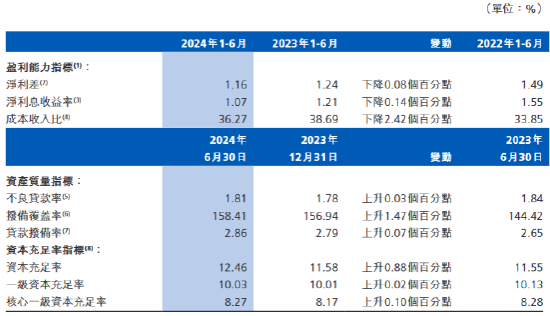 在资产质量方面,截至报告期末,该行不良贷款余额为171.12亿元,比上年末增加5.54亿元;不良贷款率为1.81%,比上年末上升0.03个百分点。贷款损失准备计提充足,贷款减值准备271.07亿元,比上年末增加11.20亿元。贷款拨备率2.86%,拨备覆盖率158.41%,均符合监管要求。报告期内,集团实现净利润36.97亿元,同比下降9.80%。